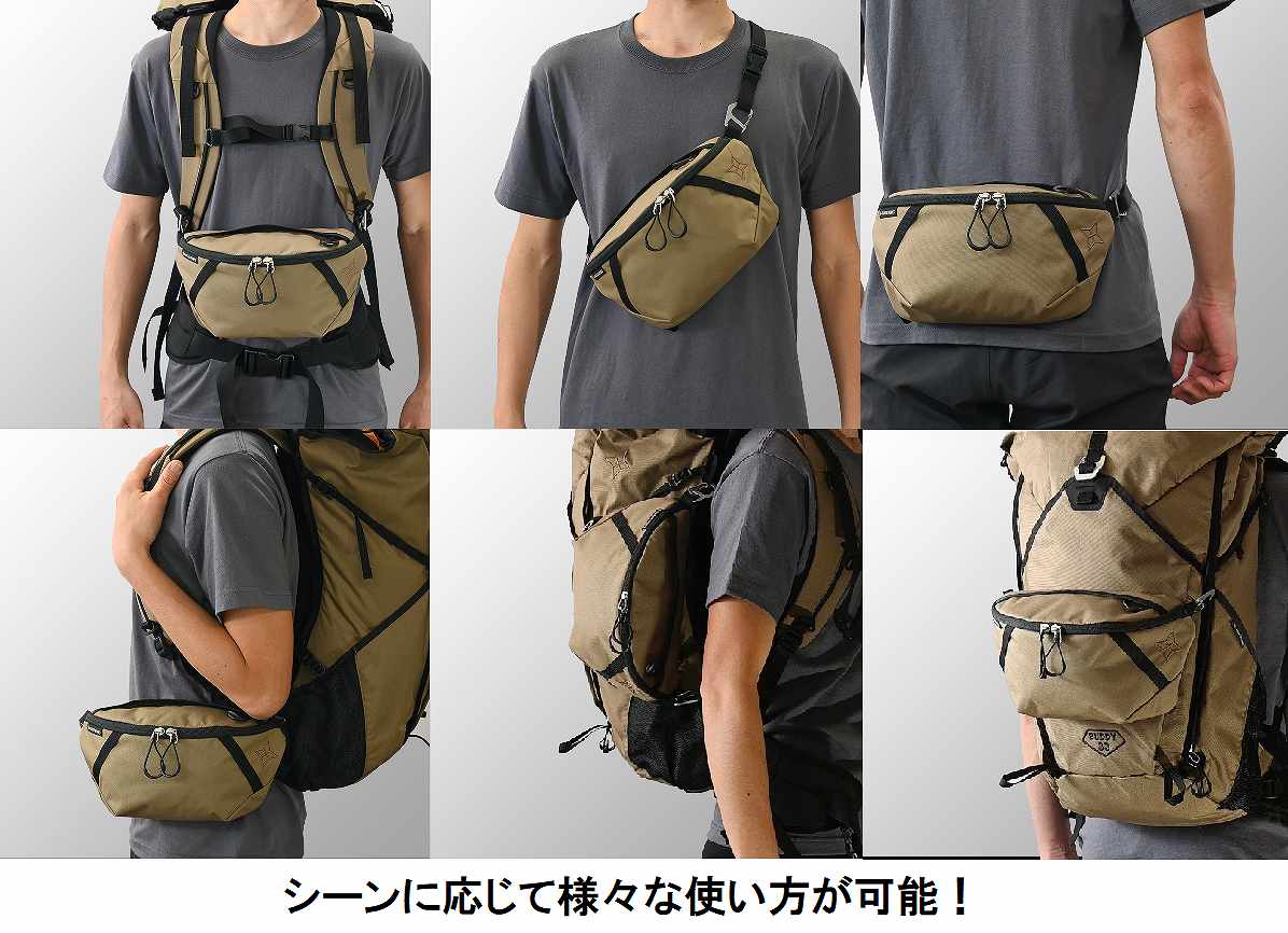 チェストバッグ、ショルダーバッグ、ウエストバッグ、サイドポケット、アウターポケット