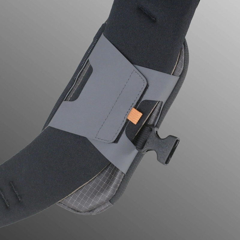 バックパックのショルダー幅に合わせたスリムなフォルムで、行動中の動きを妨げません。