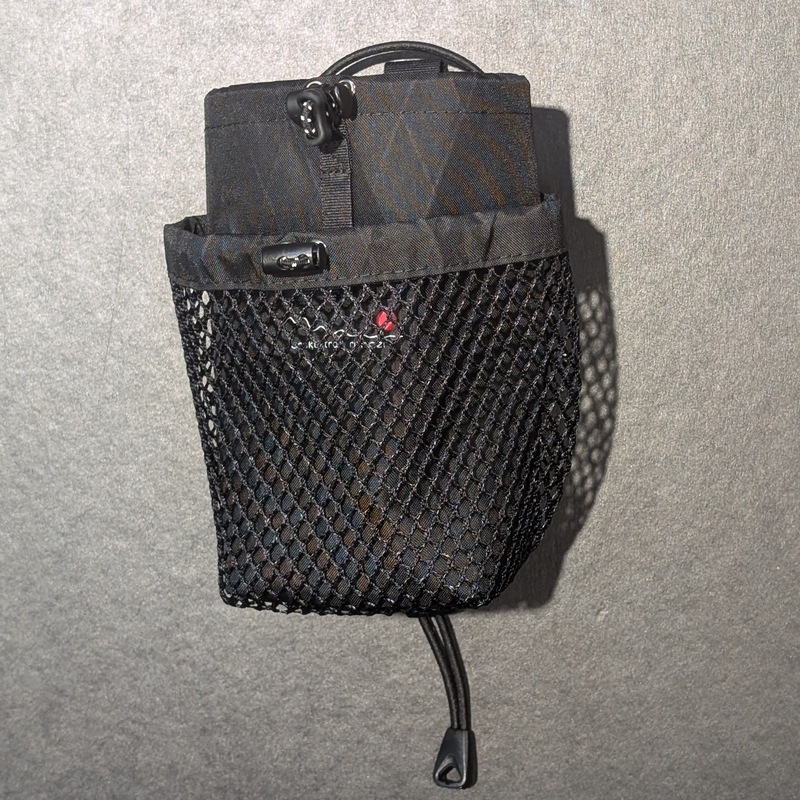 基本的な構造は、通常版Bottle holder PTと同じで、特徴である大きなメッシュポケットにはスマートフォンや行動食、サングラス等のちょっとした小物を収容するのに最適です。