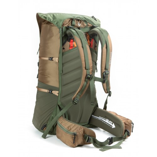 上部の取り外し式リッドを伸ばせばロングトレイルに必携のフードコンテナなどのかさばるギアの収納と下部のポケット付きボトムフラップにもギアをはさむことが可能です。