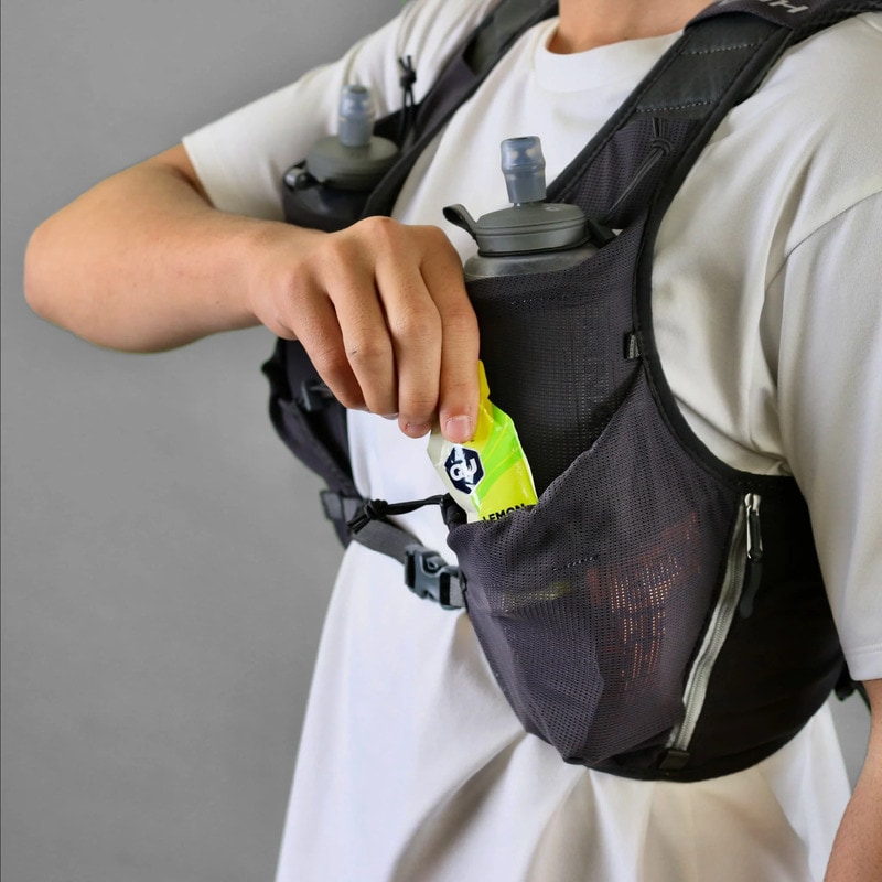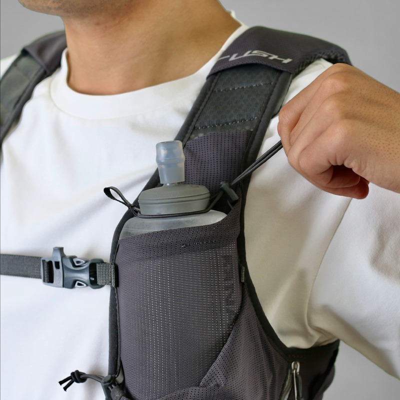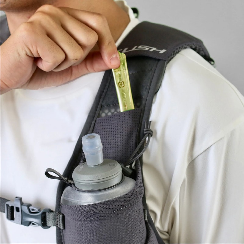 600ccまでのソフトフラスクと500ccのペットボトルが収納できるボトルポケット。