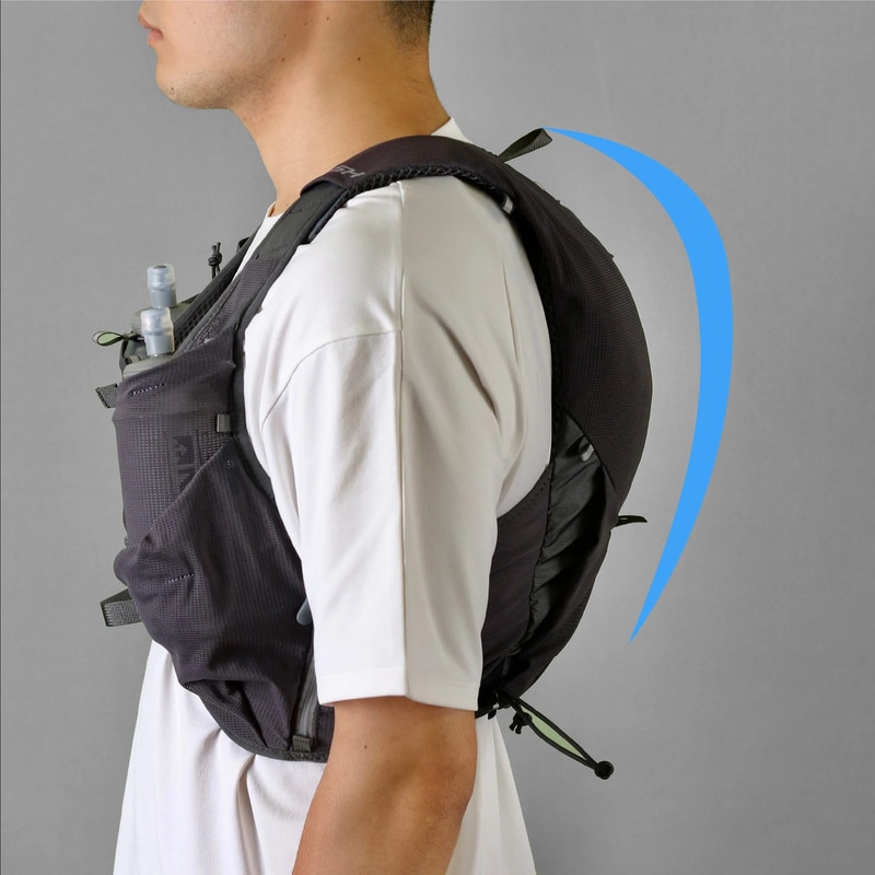 さまざまな体型のランナーにフィットするように設計された無段階調整式ショルダーハーネス。