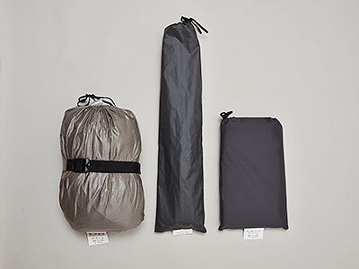 *SLドーム・SLソロには付属品として「専用アンダーシート」「ペグ」「張り綱」「シームコート」「リペアスリーブ」がセットされています。「専用アンダーシート」以外の付属品の重量は約200gです。