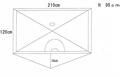 間口210cm 奥行120cm 高さ95cm 前室張出 38cm