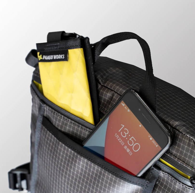身体側のポケットは、スマートフォンやチケットなどの一時的な収納に便利です。(Lサイズはジッパーポケット付き。画像はLサイズ。)