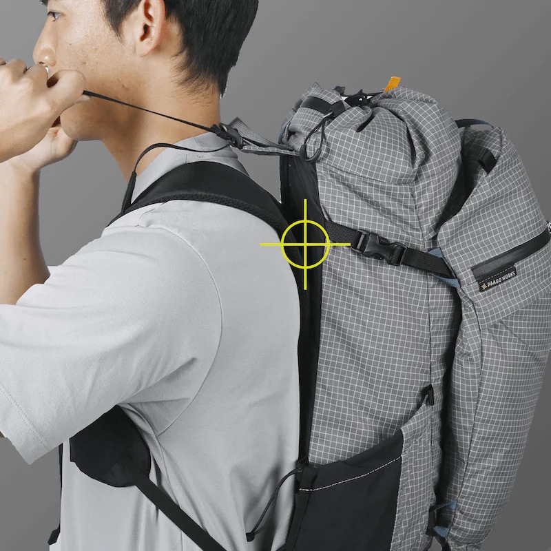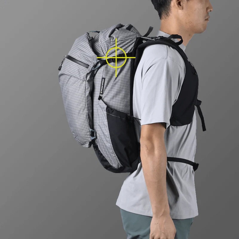 アルパインザックのような細身のシルエットを基本にしながら、肩甲骨の周辺にボリュームを持たせることで荷重バランスを最適化しています。RUSHとBUDDYゆずりの高重心設計です。