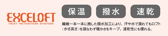 保水しないポリエステル繊維の一本一本に、シリコーンコーティングを施してはっ水性を高めています。行動時に汗や雨などで濡れても、ロフトを損なわず、保温力をキープし、抜群の速乾性も実現しています。