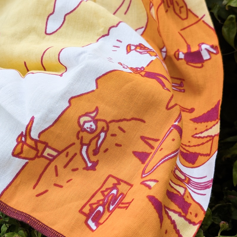 人それぞれ持つ思いをイラストに起こしてもらい、山に持っていける手ぬぐいに仕立てました。
