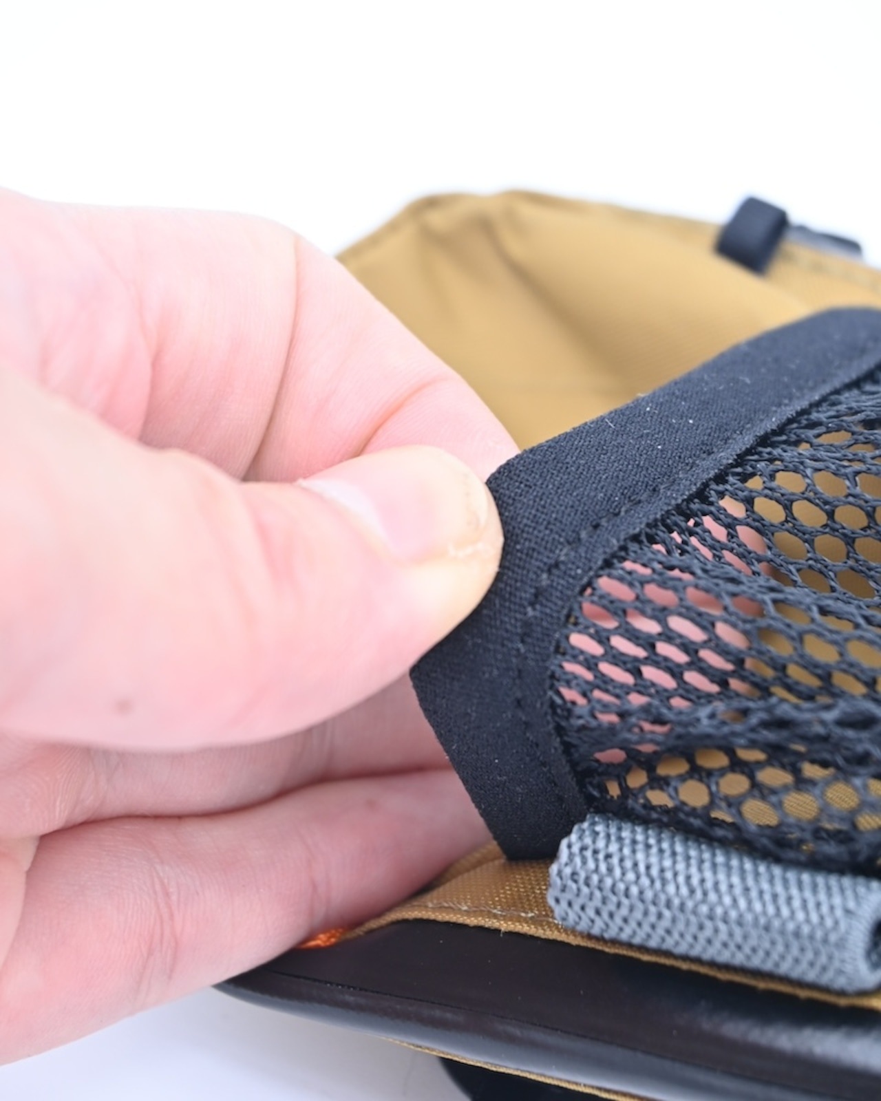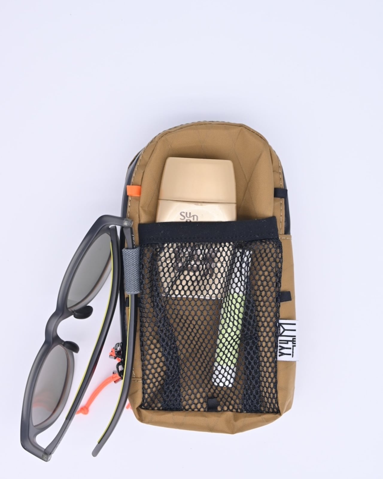 メッシュポケットの左側にあるストレッチ製バンドループにサングラスを固定することができます。