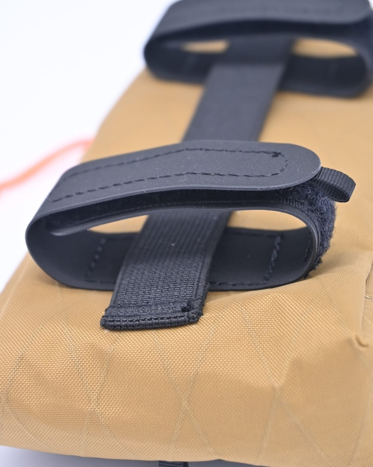 縦のゴムバンドでザックのウエストベルトやズボンベルトへの装着が可能です。