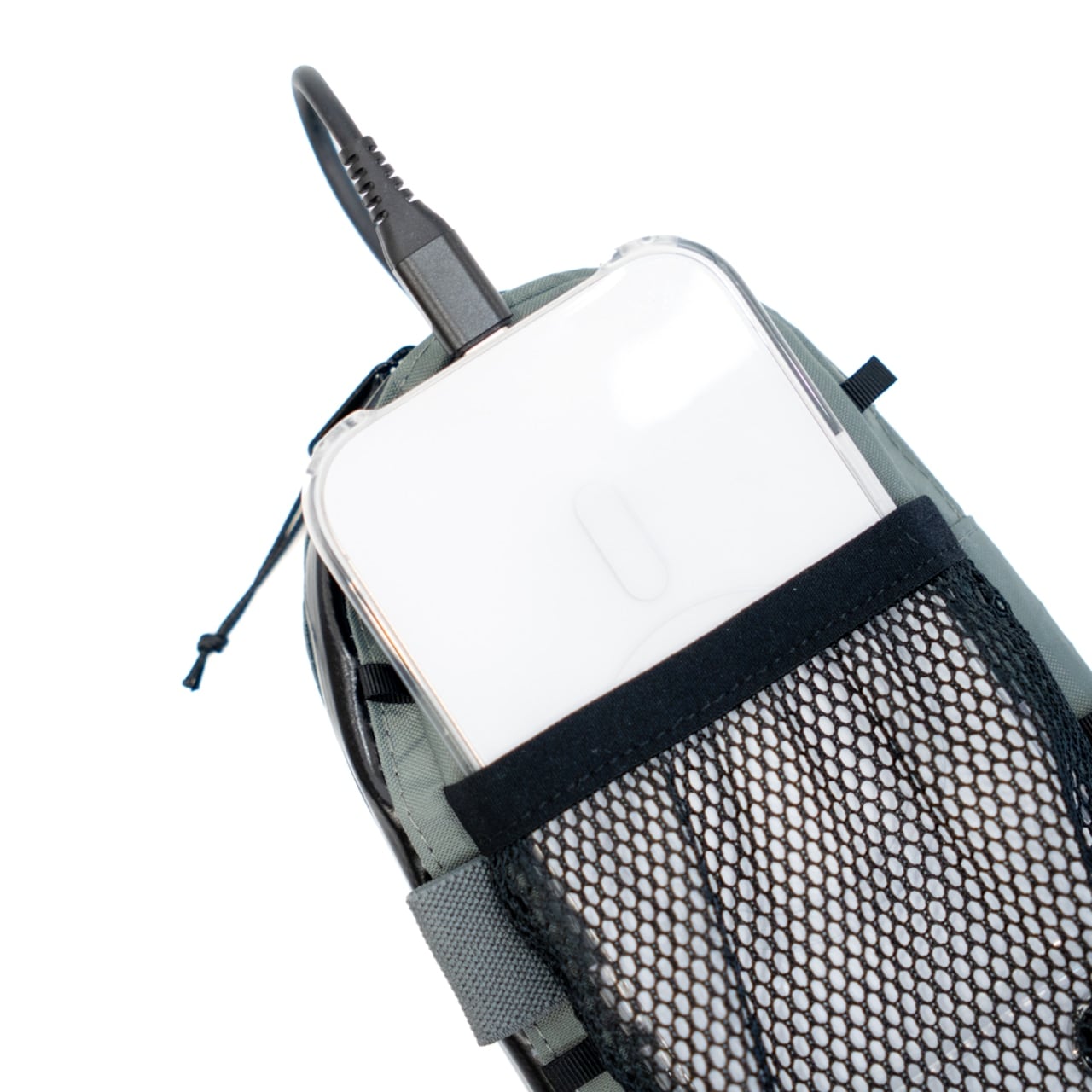 モバイルバッテリーを内部に収納し、ケーブルを外へ通せる設計のため、登山中でもスマホを充電しながら使用できます。行動中にスマホ操作が必要な場面でも、ストレスなくスムーズに対応できます。