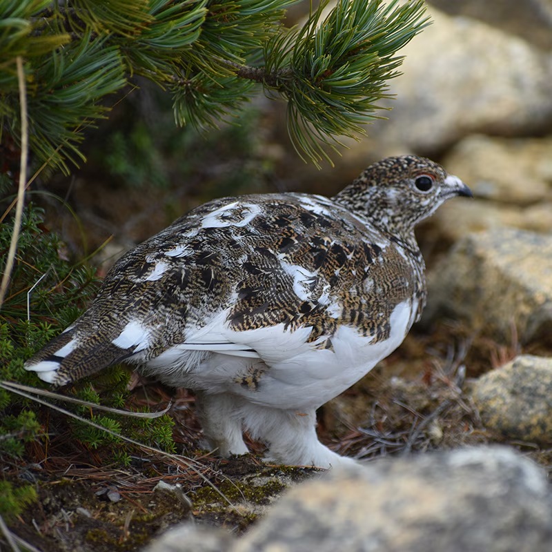 2000メートル以上の高山でしか見ることができない特別天然記念物で絶滅危惧種のライチョウ。